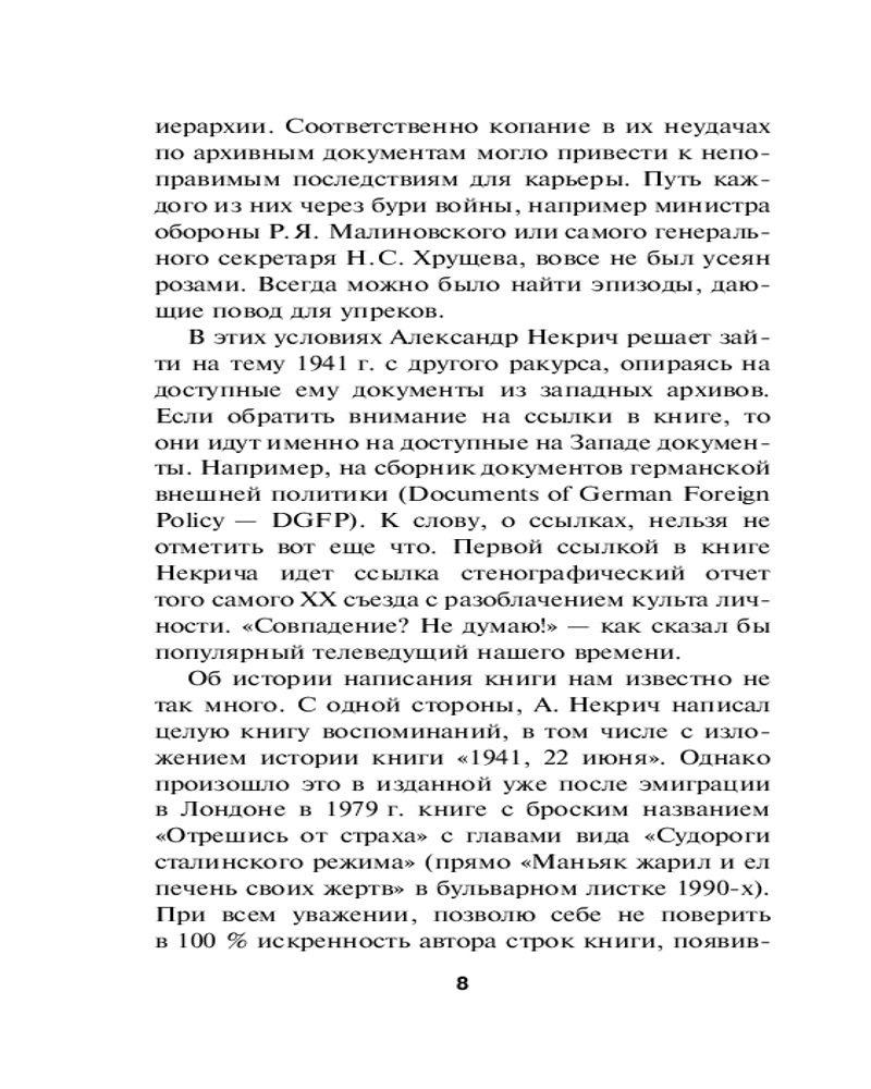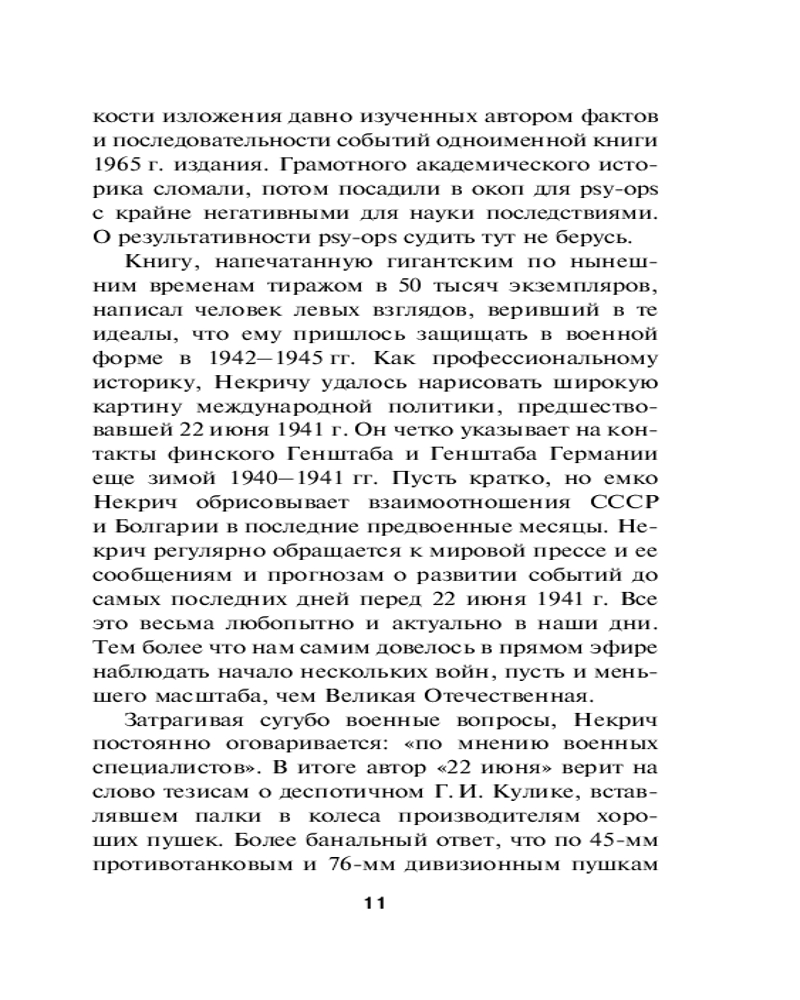 💳 Оплатить за товар можно при получении 🇰🇿 Есть бесплатная доставка по Казахстану от 1 дня 🎁 Копите бонусы с каждой покупки Серия: Секретные материалы Великой Отечественной «Книгу Александра Некрича „1941. 22 июня“ целесообразно изъять как политически вредное издание». Так, запретом, уничтожением тиража, исключением автора из партии и его эмиграцией в США закончилось издание в СССР этой ставшей поистине легендарной книги. Хотя именно работа А.М. Некрича (1920–1993) пробудила широкий общественный интерес к причинам трагедии 1941 года, а автор культового «Ледокола» Виктор Суворов (Владимир Резун) впоследствии лишь оседлал горячую тему. Книгу, напечатанную в Советском Союзе гигантским для сегодняшнего времени тиражом, написал человек, веривший в те идеалы, которые ему пришлось защищать на фронтах Великой Отечественной войны. Как профессиональному историку, Александру Некричу удалось мастерски нарисовать широкую картину обстановки, предшествовавшей началу операции «Барбаросса» — от военно-экономической подготовки к нападению, международной политики (например, заключения мира с Великобританией и контактов финского и немецкого генштабов еще зимой 1940–1941 годов) до нацистских планов уничтожения мирного населения СССР. |