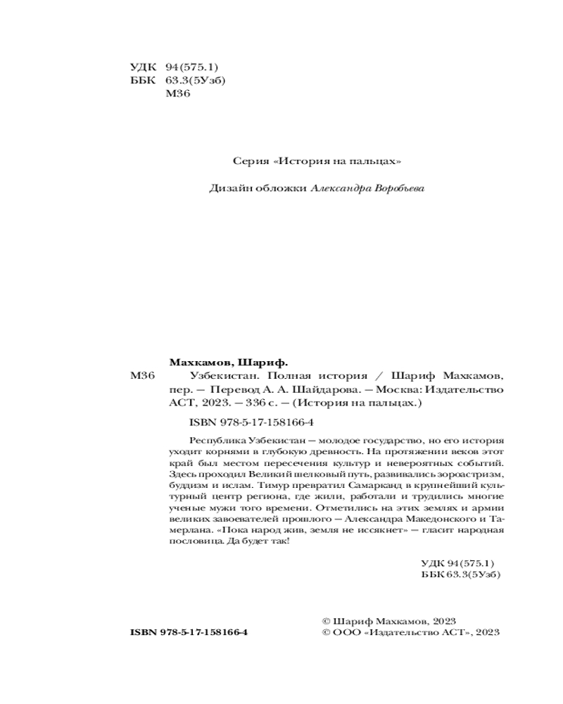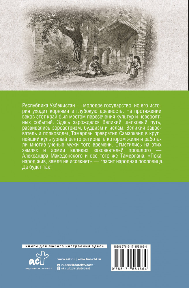 💳 Оплатить за товар можно при получении 🇰🇿 Есть бесплатная доставка по Казахстану от 1 дня 🎁 Копите бонусы с каждой покупки Серия: История на пальцах Республика Узбекистан — молодое государство, но его история уходит корнями в глубокую древность. На протяжении веков этот край был местом пересечения культур и невероятных событий. Здесь проходил Великий шелковый путь, развивались зороастризм, буддизм и ислам. Тимур превратил Самарканд в крупнейший культурный центр региона, где жили, работали и трудились многие ученые мужи того времени. Отметились на этих землях и армии великих завоевателей прошлого — Александр Македонский и Тамерлан. «Пока народ жив, земля не иссякнет» — гласит народная пословица. Да будет так!. |