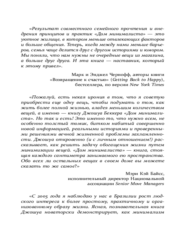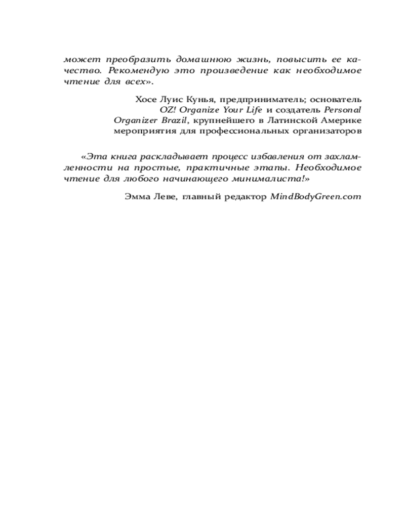 💳 Оплатить за товар можно при получении 🇰🇿 Есть бесплатная доставка по Казахстану от 1 дня 🎁 Копите бонусы с каждой покупки Серия: Книги, о которых говорят Ежегодно мы приносим в наш дом десятки и сотни новых вещей. Каждая покупка дает кратковременное ощущение счастья, а затем нам снова чего-то не хватает. Наши шкафы под завязку забиты одеждой, которую мы не носим, на балконах и в гаражах скапливаются вещи, которые вроде не нужны, но жалко выбросить, а в трюмо пылится ни разу не использованный сервиз. Все это давит, забирает энергию и место в доме. |