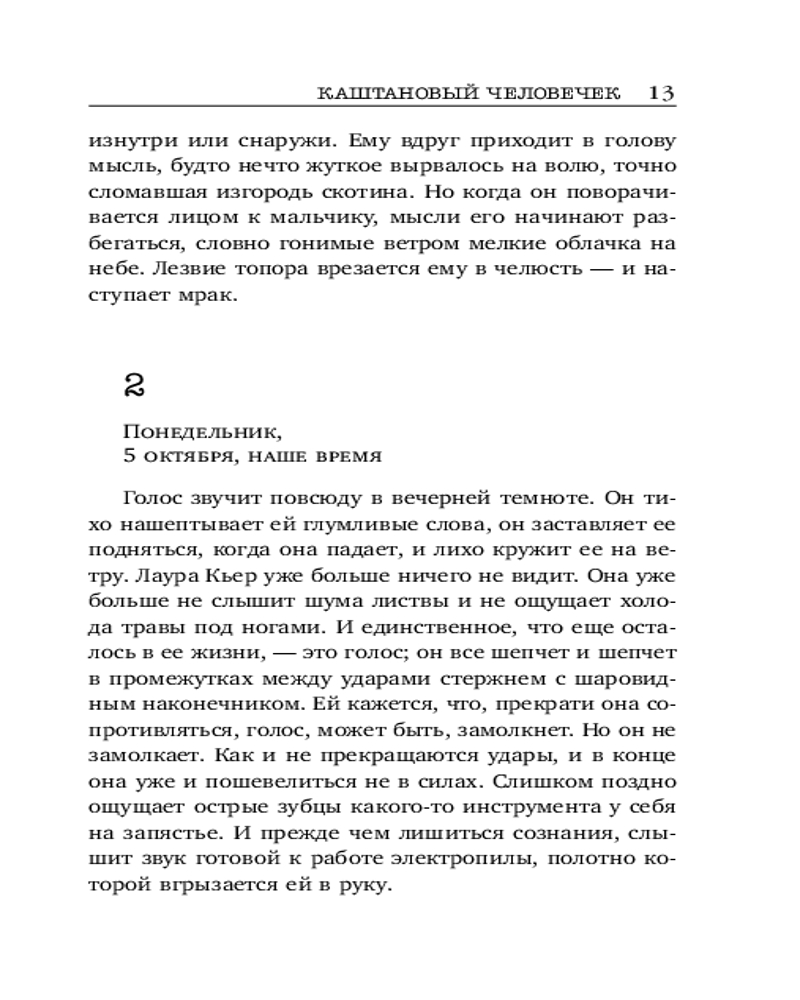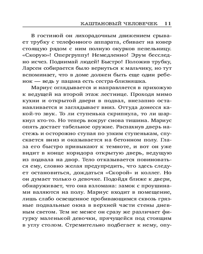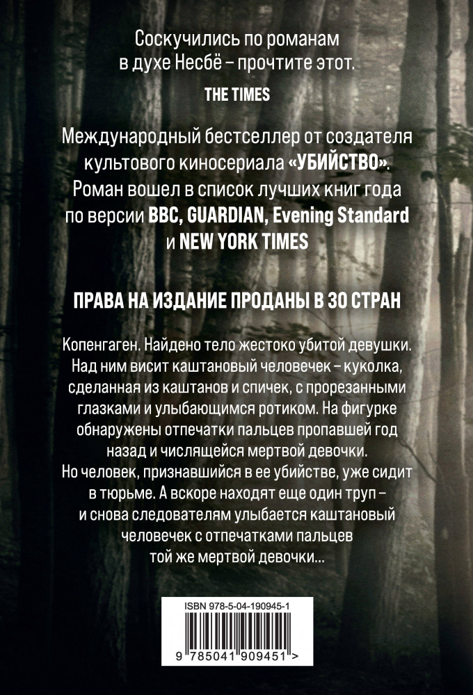 💳 Оплатить за товар можно при получении 🇰🇿 Есть бесплатная доставка по Казахстану от 1 дня 🎁 Копите бонусы с каждой покупки Серия: Кинопремьера мирового масштаба (обложка) Копенгаген. Найдено тело жестоко убитой девушки. Над ним висит каштановый человечек — куколка, сделанная из каштанов и спичек, с прорезанными глазками и улыбающимся ротиком. На фигурке обнаружены отпечатки пальцев пропавшей год назад и числящейся мертвой девочки. Но человек, признавшийся в ее убийстве, уже сидит в тюрьме. А вскоре находят еще один труп — и снова следователям улыбается каштановый человечек с отпечатками пальцев той же мертвой девочки... |