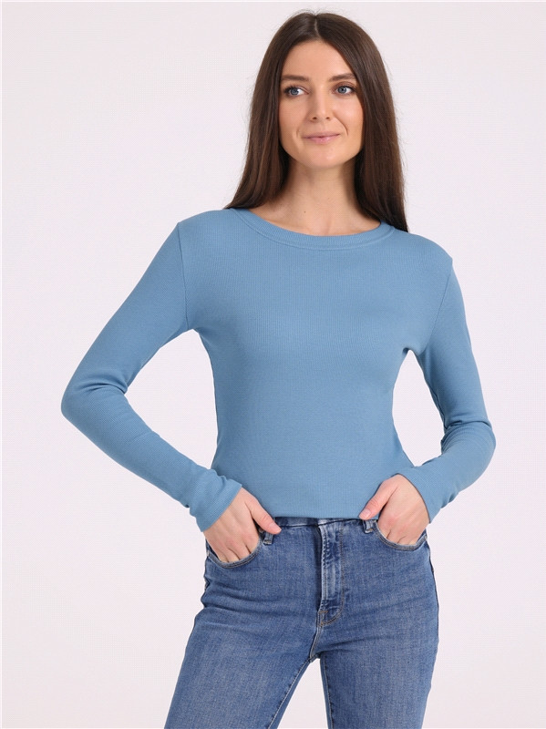 Лонгслив выполнен из эластичного хлопкового полотна в рубчик. Изделие с длинными рукавами и округлым вырезом горловины. Незаменимый базовый предмет женского гардероба!
