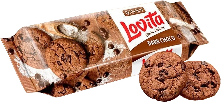 Roshen Печенье сдобное с какао и кусочками шоколадной глазури «Lovita classic cookies»