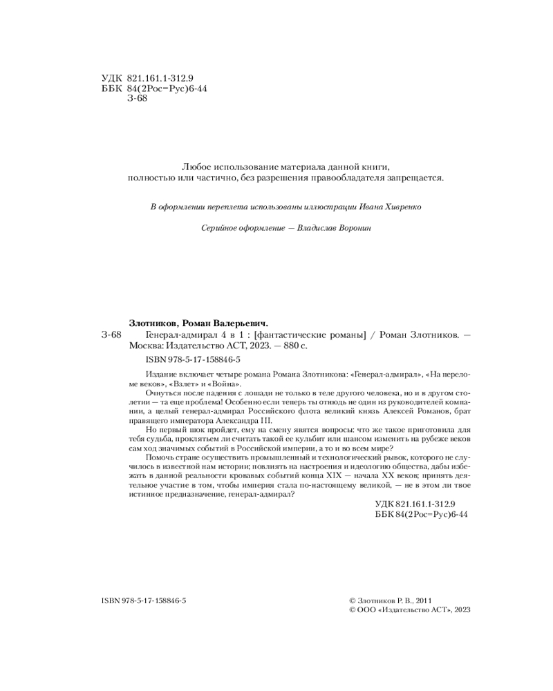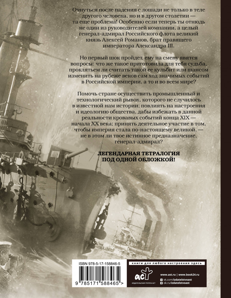 💳 Оплатить за товар можно при получении 🇰🇿 Есть бесплатная доставка по Казахстану от 1 дня 🎁 Копите бонусы с каждой покупки Серия: Весь (гигант) Потерять руководящий пост в компании, особенно если ты профессионал в узкой области, — это проблема. Однако Алексею Андреевичу Коржину повезло: ему не только предлагают работу, но и дают возможность воздать по заслугам обидчикам. И надо же было перед решающими переговорами свалиться с лошади! Очнулся Коржин там, где и падал, — в Санкт-Петербурге. Только не в XXI веке, а в XIX-м. И из зеркала на него смотрела не собственная стареющая физиономия, а лицо 33-летнего генерал-адмирала Российского флота великого князя Алексея Романова... |