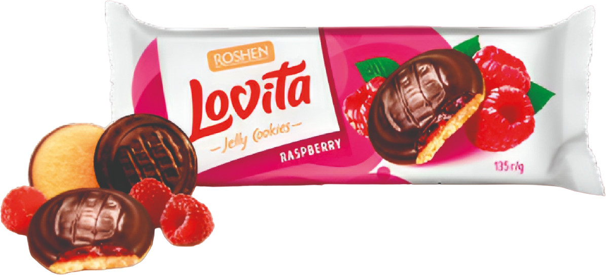 Roshen Печенье в шоколадной глазури с желейной начинкой со вкусом малины «Lovita jelly cookies»