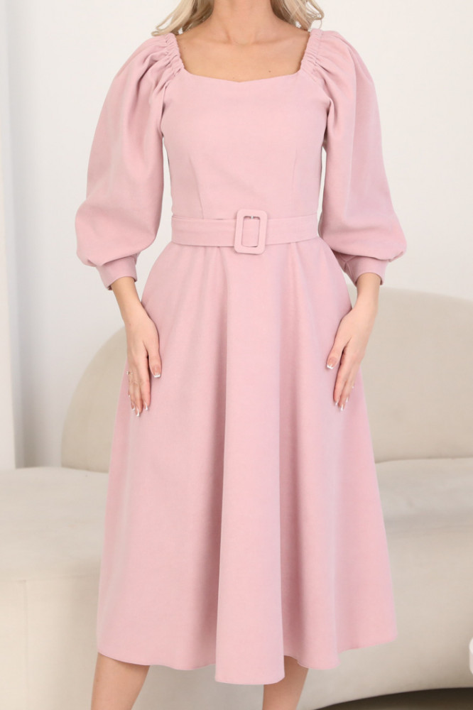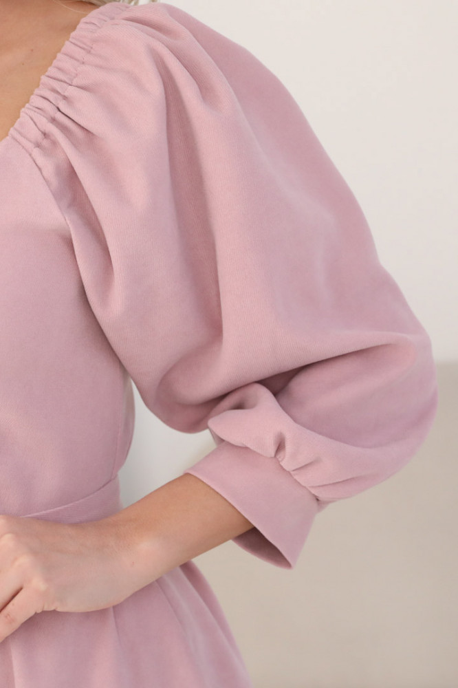 Платье из довольно плотной ткани, хорошо дершит форму. В ПВ посмотрела соответствие цвета и размера, ткань на ощупь показалась, как плотный трикотаж. Но это микровельвет с очень тонким рубчиком, почти гладкий. Я купила платье голубого цвета. Такой же, как на фото. Размер соответствует. У меня 44-46, рост 162. Я заказала 46 размер, село отлично. Длина - до середины икры. Качество пошива хорошее.