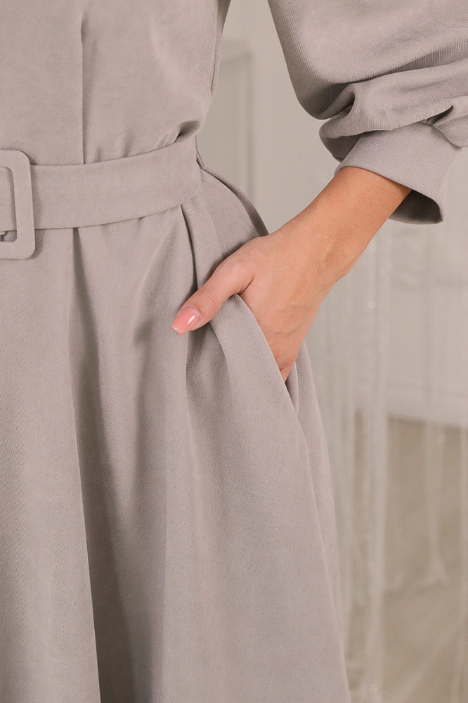 Платье из довольно плотной ткани, хорошо дершит форму. В ПВ посмотрела соответствие цвета и размера, ткань на ощупь показалась, как плотный трикотаж. Но это микровельвет с очень тонким рубчиком, почти гладкий. Я купила платье голубого цвета. Такой же, как на фото. Размер соответствует. У меня 44-46, рост 162. Я заказала 46 размер, село отлично. Длина - до середины икры. Качество пошива хорошее.