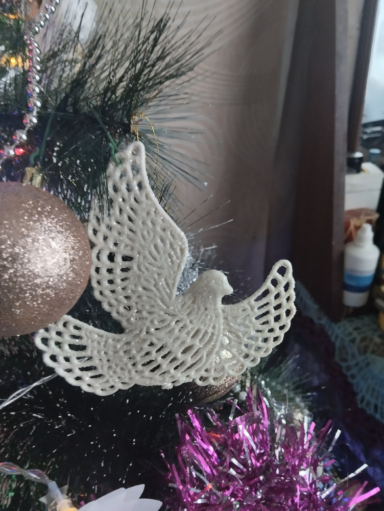 Оптимального размера голубки, очень красивые, но к сожалению блёстки осыпаются. Ёлка сразу приобрела праздничный вид.