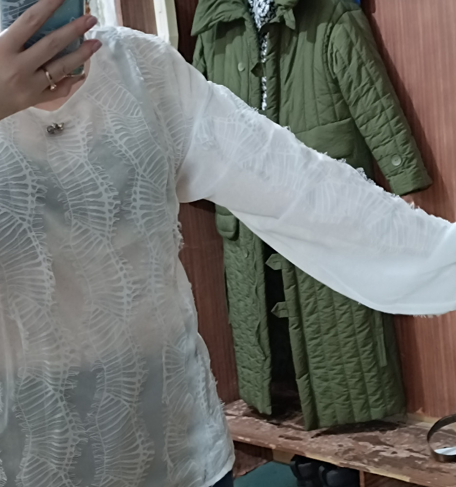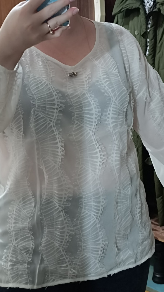 блузка белоснежная,пошив аккуратный, ткань легкая,дышит,очень воздушная!