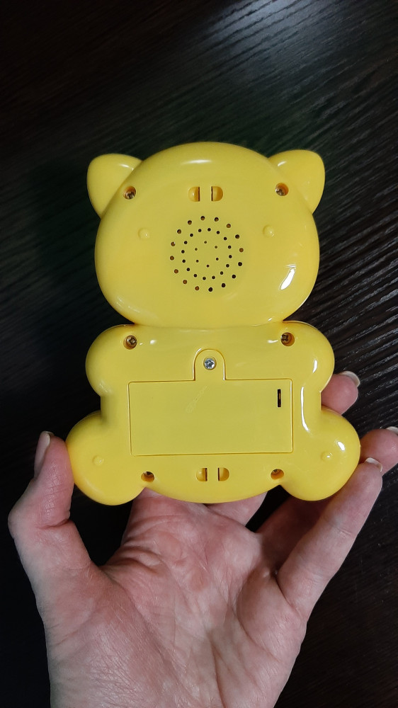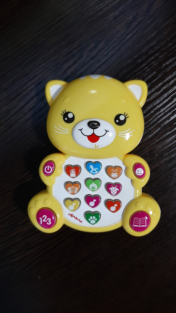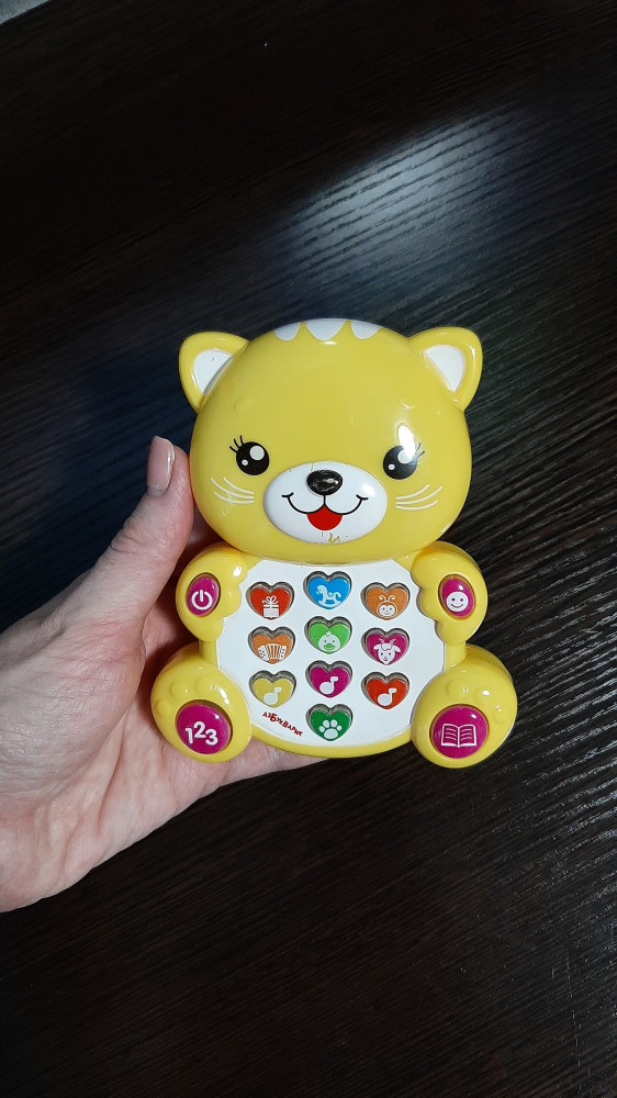 Хорошая игрушечка! Маленькая, но для малышей в самый раз! Много разных звуков, песенок. Сказки есть. Кнопочки мягкие, легко нажимаются, мигают. Ребенку 1 годик понравилось. Батарейки там уже стояли.