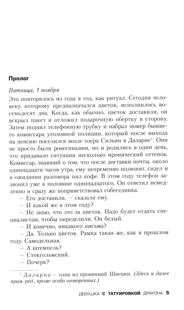 Превосходная книга, которая разбудила во мне интерес к детективам. Две ночи не спал, пока читал. Издание отличное, можно заказывать смело. Страницы белые, шрифт четкий, имеются приятные мелочи вроде карты острова, где происходят события. 5+. Уже на 20-ой странице понял, что буду заказывать оставшиеся две книги трилогии.