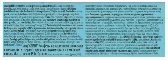 Fazer Конфеты из молочного шоколада с соленой карамелью «Geisha. Caramel and Sea Salt»В данный момент этот товар отсутствует в продаже. Возможно, у нас найдется аналогичный или похожий товар здесь. Fazer конфеты из молочного шоколада Geisha с соленой карамелью — это изысканное сочетание нежного молочного шоколада, хрустящей соленой карамели и неповторимого вкуса. Эти конфеты станут настоящим удовольствием для ценителей шоколадных деликатесов. |