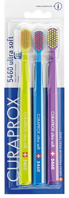 Зубная щетка Curaprox CS 5460 Ultra Soft является самой мягкой из всей серии мануальных щеток Curaprox CS и рекомендована для использования всей семьей, а также при гиперчувствительности зубной эмали. Компактная головка щетки позволяет очищать налет в труднодоступных местах, восьмигранная ручка способствует удобной чистке зубов под любым углом без скольжения, а 5460 ультрамягких щетинок, состоящих из запатентованных волокон Curen, тщательно, но бережно удаляют налет, не повреждая десна и не создавая микротрещины на эмали зубов.