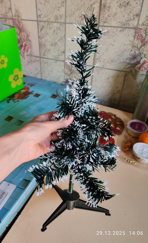 ёлка намного меньше, после открытия упаковки отвалилась ветка