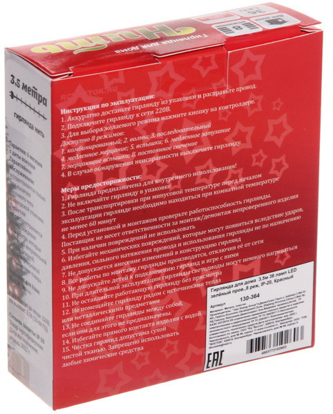 Хорошая гирлянда, исправно работает! Имеется 8 режимов, отлично подошла на мою маленькую 1.5 метровую елочку. Долго сомневалась брать ли, из-за цены и множества плохих историй с гирляндами, но не пожалела. Отличная покупка 👍