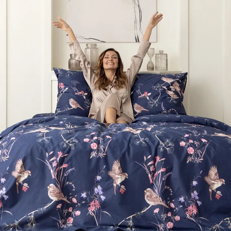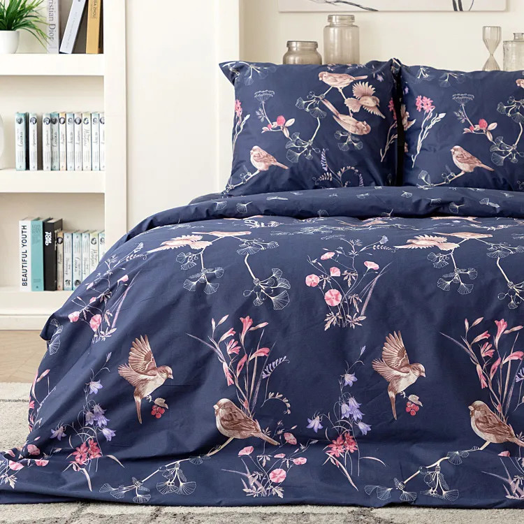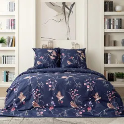 Постельное белье сшито из сатина — самого популярного плетения 100%-го хлопка. Сатин очень мягкий, износостойкий, который производят из крученой хлопковой нити по специальной технологии двойного плетения. Чем больше скручена нить, тем сильнее блестит ткань. Плотное переплетение нитей делает сатин премиум прочным и долговечным. Для производства сатина используют только хлопок высшего качества. Белье из такой ткани выдерживает 200–300 стирок. Сатин дешевле, чем шёлк, но дороже, чем другие ткани из хлопка. Из него изготовляется красивое качественное бельё для повседневного применения.