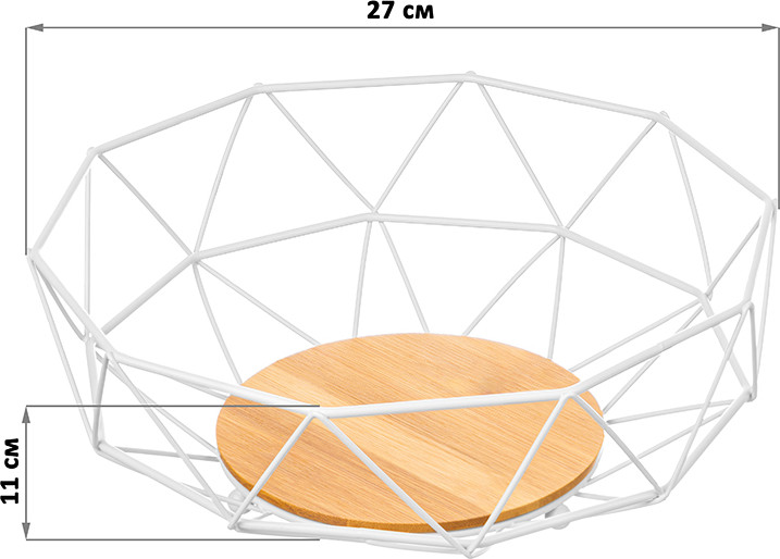 💳 Оплатить за товар можно при получении 🇰🇿 Есть бесплатная доставка по Казахстану от 1 дня 🎁 Копите бонусы с каждой покупки Корзина для фруктов выполнена из прочного металла, имеет бамбуковое дно и обладает оригинальным геометрическим дизайном. Металлическое блюдо — это универсальное интерьерное решение для дома или офиса. Можно удобно разместить фрукты на кухне, украсить корзинкой гостиную, приемную или зал ожидания. Фруктовница из металла и бамбука эстетично впишется в самые разные стили интерьера: лофт, сканди или минимализм. |