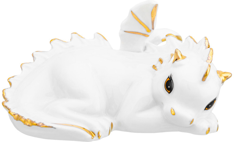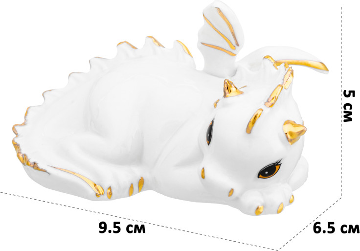 Декоративная фигурка «Лежачий дракончик» привлекает взгляд своей изысканной красотой и уникальным дизайном. Статуэтка — символ года Дракона 2024! Изделие выполнено из высококачественного фарфора. Этот материал придает фигурке нежность, одновременно сохраняя ее прочность и долговечность. Каждая линия и изгиб тщательно проработаны, чтобы создать впечатление живого существа.