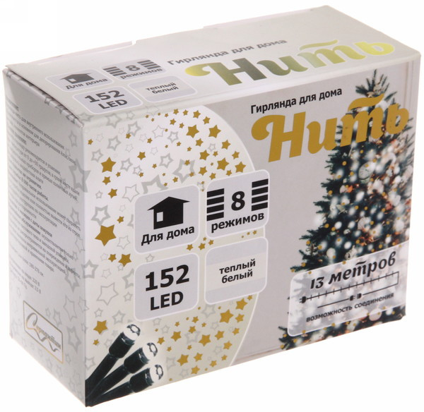 Среди огромного выбора электрических световых гирлянд наиболее популярными являются гирлянды в виде нити. Простая конструкция идеально подходит для украшения елок, окон, витрин, дверных проемов и стен. Провод выполнен из темно-зеленого ПВХ, что позволит незаметно использовать гирлянду на темных поверхностях и она будет совсем неприметна на елке. Предназначена для работы в теплых помещениях. Желтый — очень популярный вид свечения домашней гирлянды, создающий теплую, уютную атмосферу. Возможность соединения позволяет подключить сразу несколько гирлянд и украсить большую площадь.