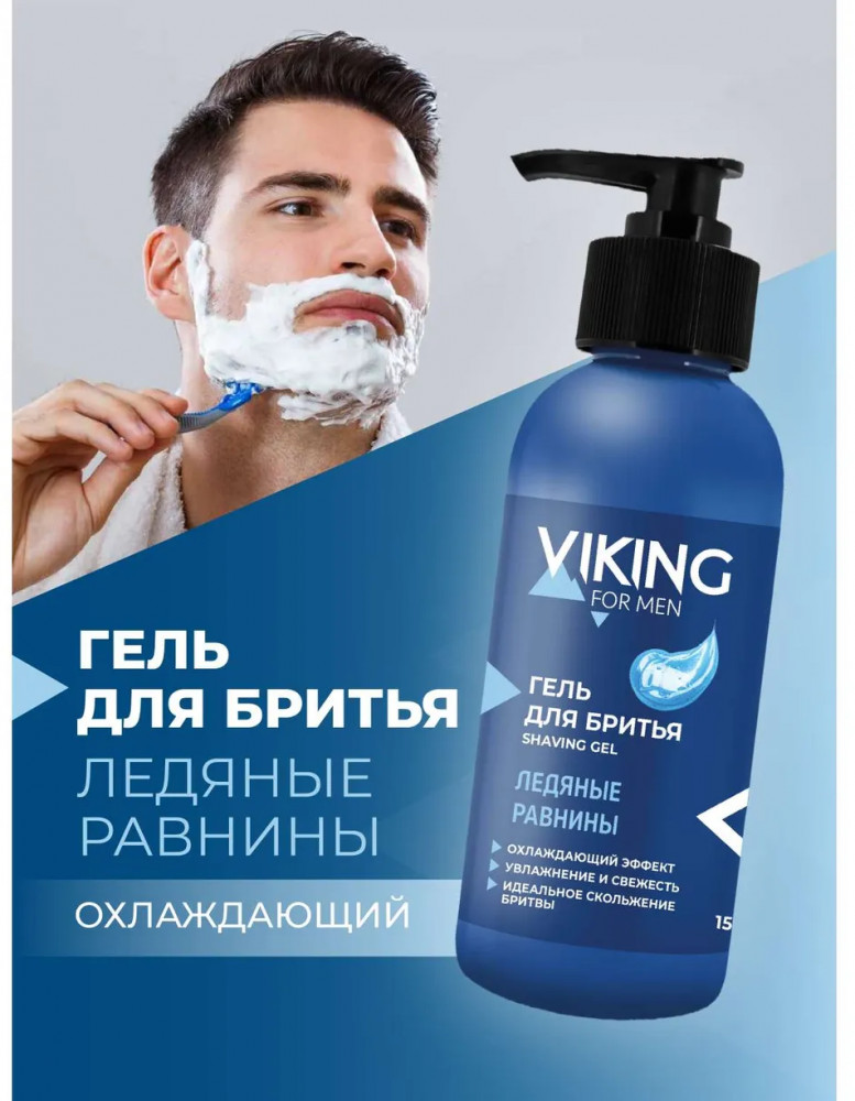 Viking Гель для бритья «Ледяные равнины»В данный момент этот товар отсутствует в продаже. Возможно, у нас найдется аналогичный или похожий товар здесь. Легкий охлаждающий гель для бритья от марки Викинг. |