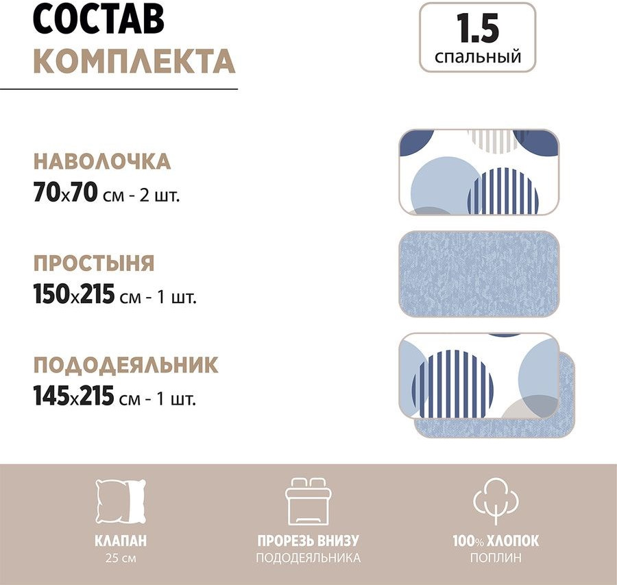• пододеяльник 145 × 215 см — 1 шт.;