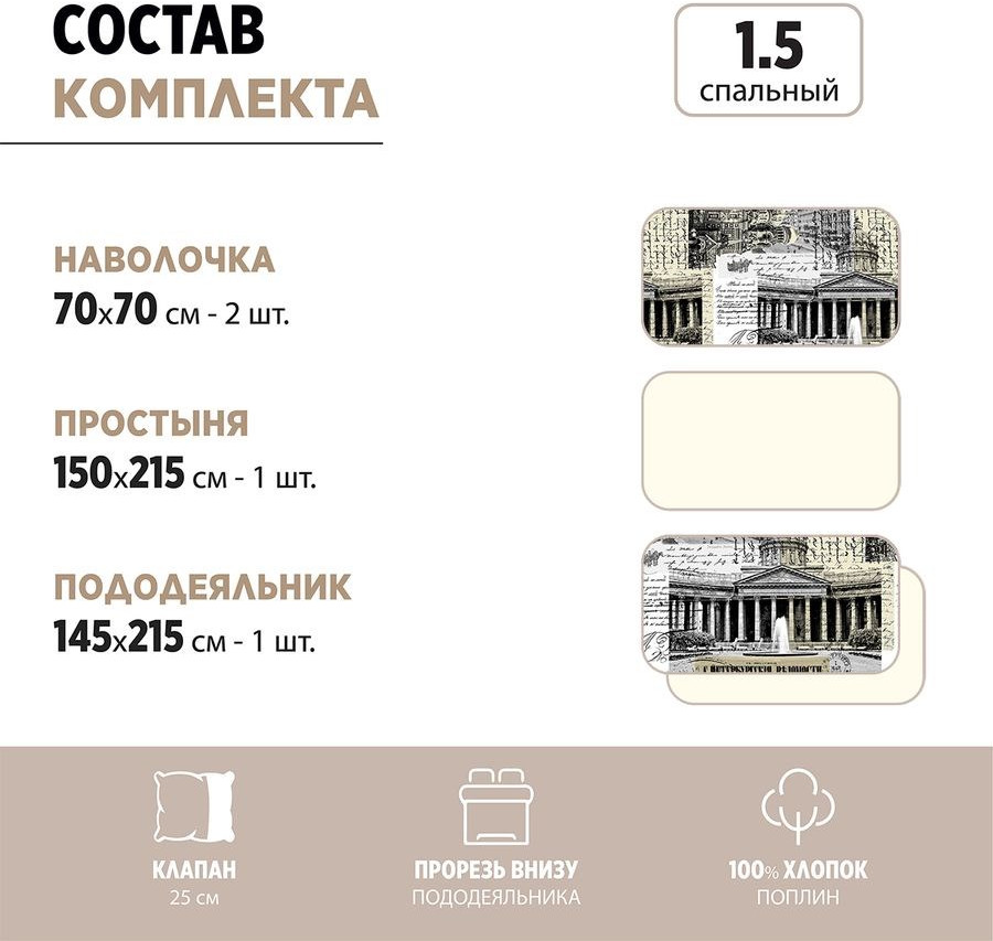 • пододеяльник 145 × 215 см — 1 шт.;