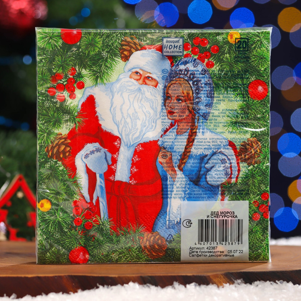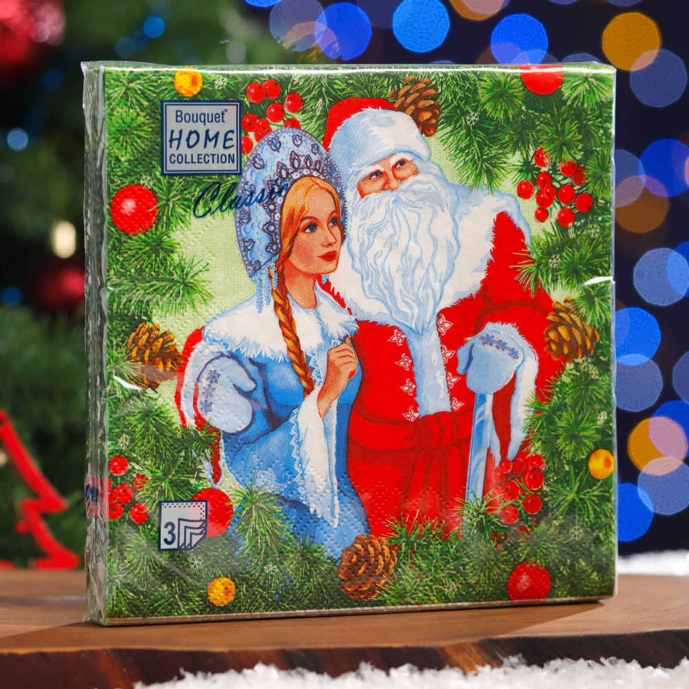 Art Bouquet Набор салфеток бумажных «Дед Мороз и Снегурочка»+40 яркий принт плотные праздничный дизайн подарочные