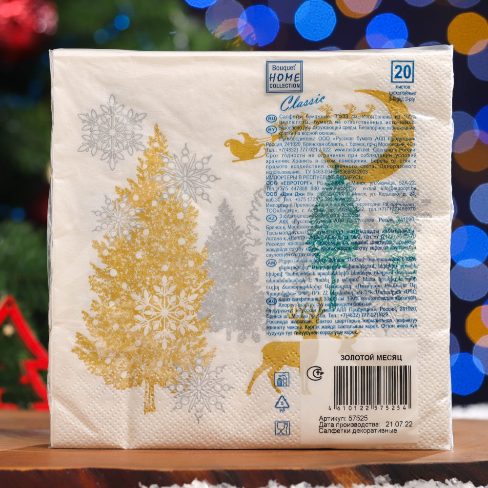 Art Bouquet Набор салфеток бумажных «Золотой месяц»В данный момент этот товар отсутствует в продаже. Возможно, у нас найдется аналогичный или похожий товар здесь. Серия: Home collection. Classic Бумажные салфетки станут неотъемлемым атрибутом Вашего стола. Изделия выполнены из первичной 100 % целлюлозы премиального качества, отличаются изысканным внешним видом. |