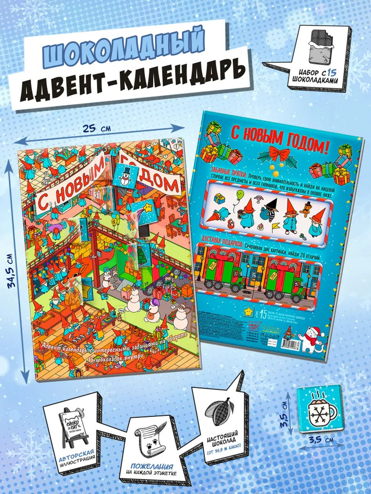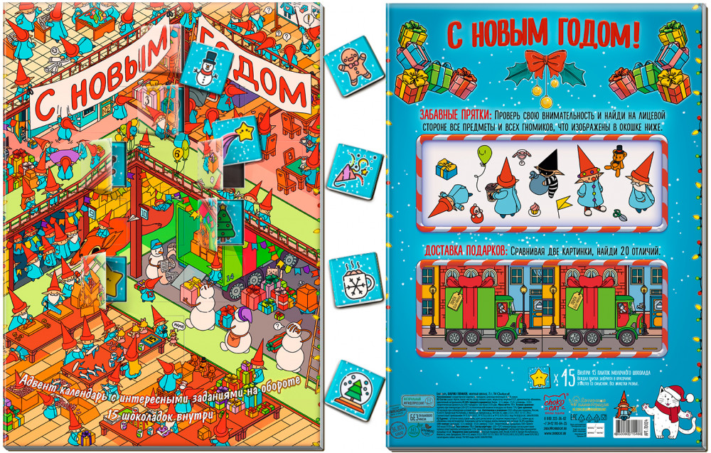 Серия: Адвент-календарь На фабрике гномиков процесс подготовки к Новому Году идет полным ходом. Сыграй в увлекательные игры на обратной стороне! Вкусный календарь в оригинальном оформлении, где каждая шоколадка имеет особое значение, а распаковка превращается в приятный ритуал. Каждая шоколадка в наборе обёрнута в красочную этикетку с индивидуальным дизайном и посланием. Шоколадные плитки и пожелания спрятаны под весёлыми и милыми иллюстрациями. Находи, открывай и угощайся! |