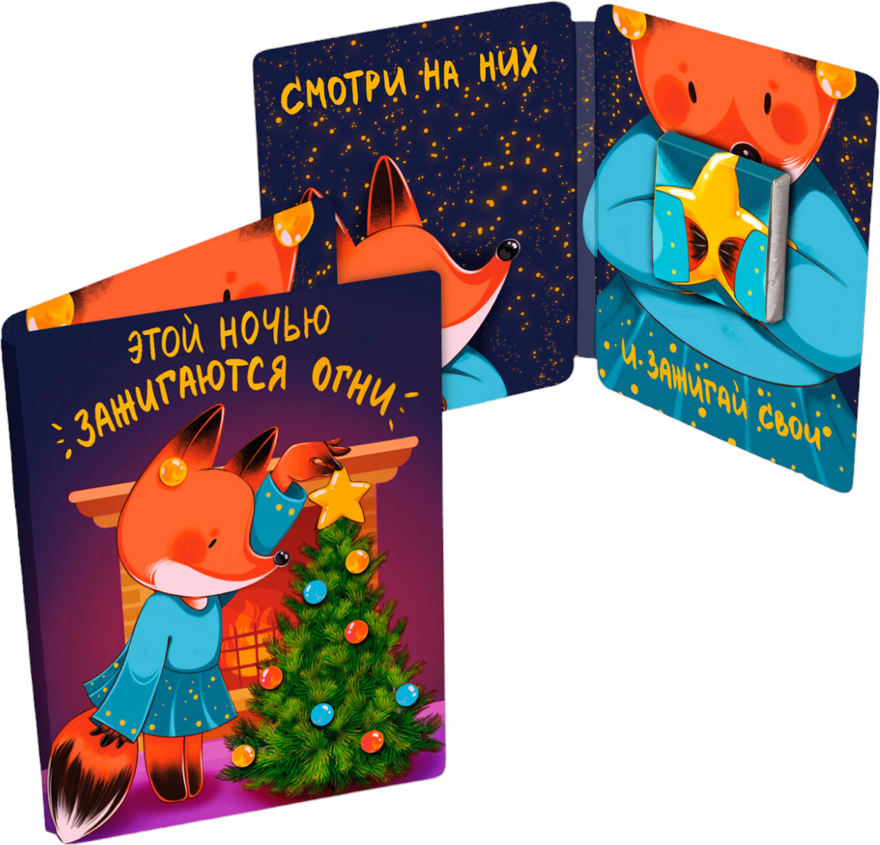 Милые открытки с маленькой шоколадкой, прекрасно подойдут, как дополнение к основному подарку на Новый год. Постоянно такие покупаю, все одариваемые рады, от младых до старых.