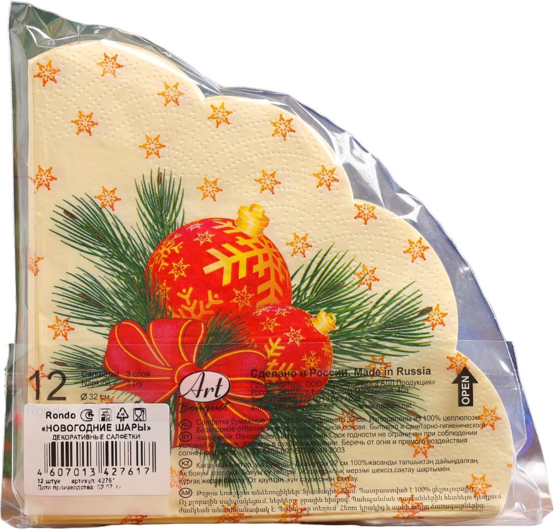 «Салфетки Art Bouquet» — это яркие трехслойные бумажные салфетки круглой формы. Такие салфетки не только сослужат хорошую службу за трапезой, но и дополнят общую атмосферу праздника. Качественные трехслойные бумажные салфетки изготовлены из качественной целлюлозы. На салфетках нанесен яркий рисунок. Салфетки с рисунком станут отличным дополнением вашего праздничного стола.