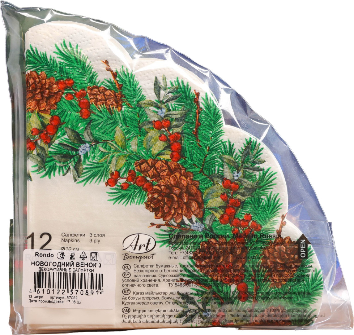 Art Bouquet Салфетки бумажные «Новогодний венок»В данный момент этот товар отсутствует в продаже. Возможно, у нас найдется аналогичный или похожий товар здесь. «Салфетки Art Bouquet» — это яркие трехслойные бумажные салфетки круглой формы. Такие салфетки не только сослужат хорошую службу за трапезой, но и дополнят общую атмосферу праздника. Качественные трехслойные бумажные салфетки изготовлены из качественной целлюлозы. На салфетках нанесен яркий рисунок. Салфетки с рисунком станут отличным дополнением вашего праздничного стола. |