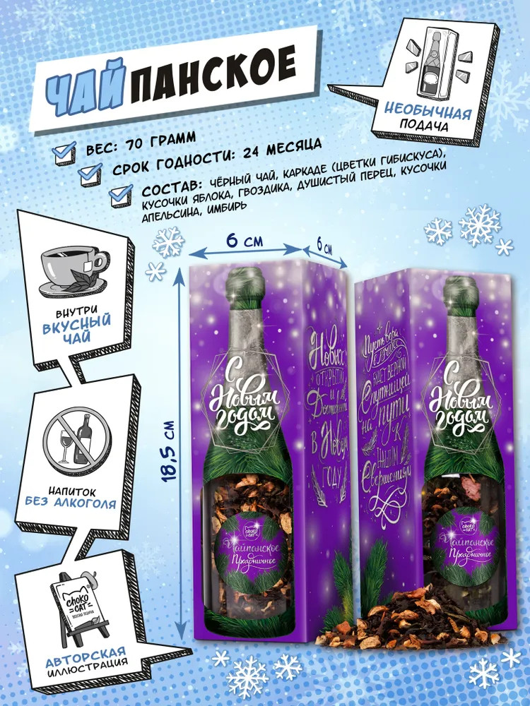 ChokoCat Чай «С Новым годом. Фиолетовое»В данный момент этот товар отсутствует в продаже. Возможно, у нас найдется аналогичный или похожий товар здесь. Серия: Чайпанское Лимитированный дизайн! Праздничное чайпанское для невероятных открытий и достижений в Новом году! Две вековые традиции российского застолья слились воедино в нашей уникальной серии — Чайпанское. Чай с натуральными фруктово-ягодными добавками. Самый оригинальный подарок, который определённо удивит получателя своей подачей. |