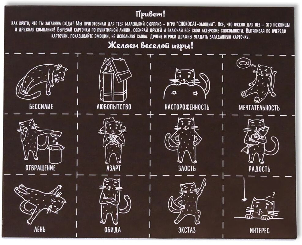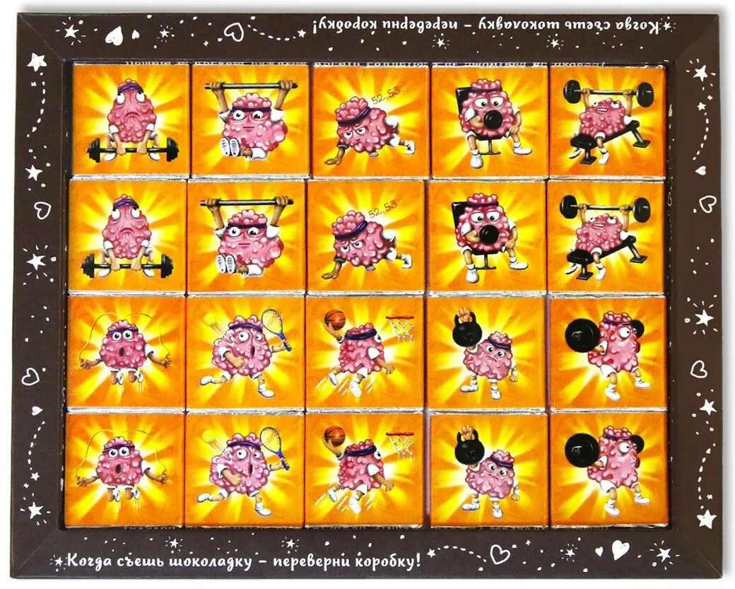 💳 Оплатить за товар можно при получении 🇰🇿 Есть бесплатная доставка по Казахстану от 1 дня 🎁 Копите бонусы с каждой покупки Серия: Шоколадные игры Знакомая всем игра на запоминание теперь ещё и вкусная! Кому-то в этой битве поможет внимательность и хорошая память, а кому-то удача и везение. Необходимо собрать как можно больше шоколадок с одинаковыми иллюстрациями и стать настоящим «Вилли Вонка» на вечеринке. Шоколадные игры — вкусные приключения, которые сближают! Серия, способная сплотить и объединить людей вокруг себя. 9 увлекательных и захватывающих игр, включая всеми известную классику, которые обязательно создадут приятную дружескую атмосферу в любой компании. |