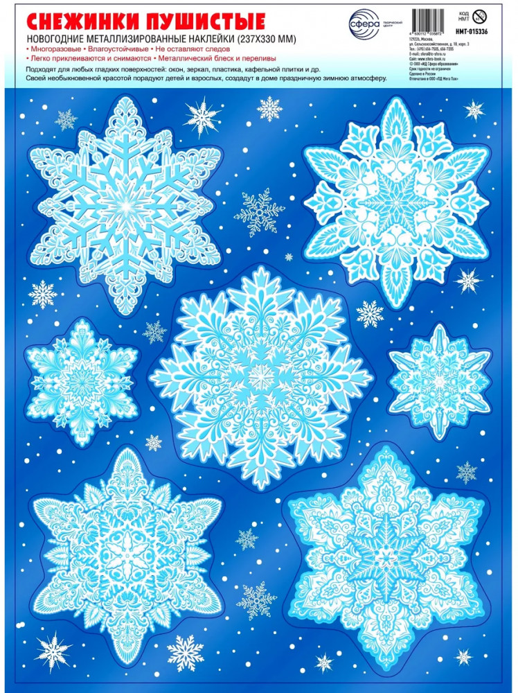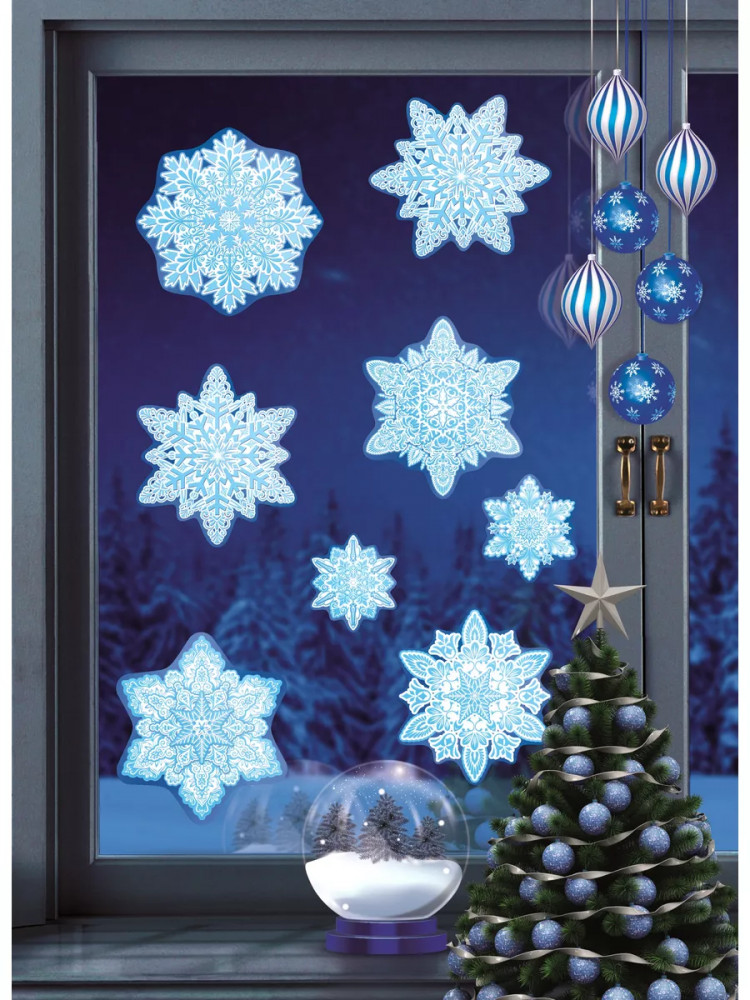 Чудесные украшения помогут сделать любой интерьер интересным, создать уют и праздничную зимнюю атмосферу. Они несомненно порадуют и детей и взрослых. Наклейки имеют серебряную металлизацию не боятся влажности и влияния высоких температур, не оставляют следов.