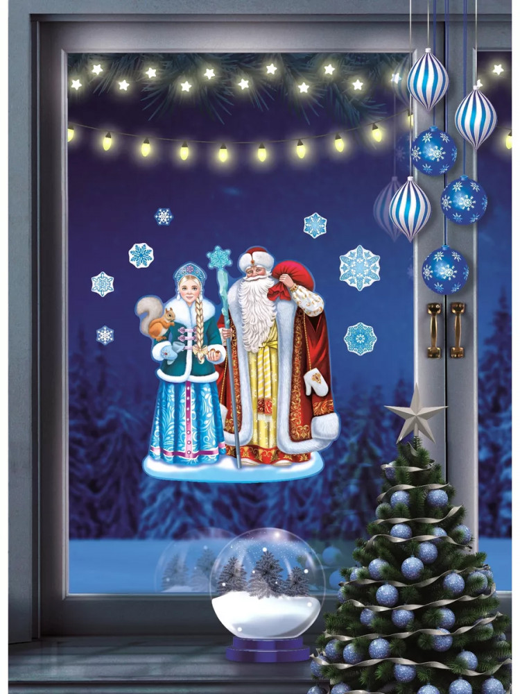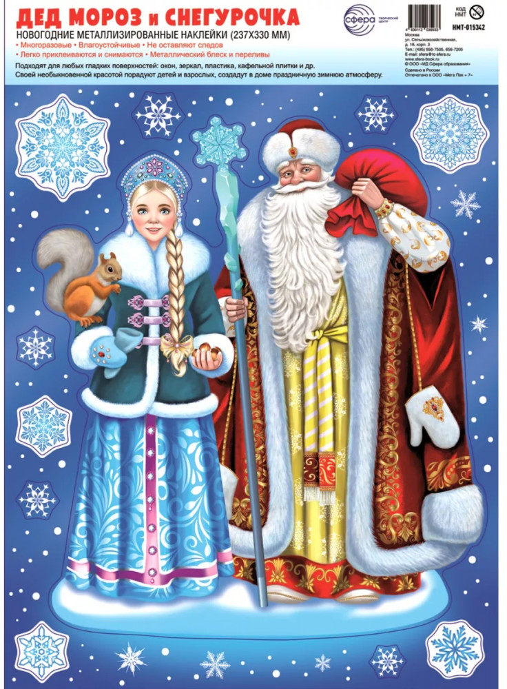 Набор наклеек многоразовых «Дед Мороз и Снегурочка»+17 легко клеится без следов маленькая не красиво