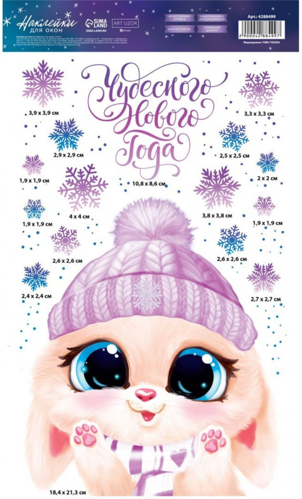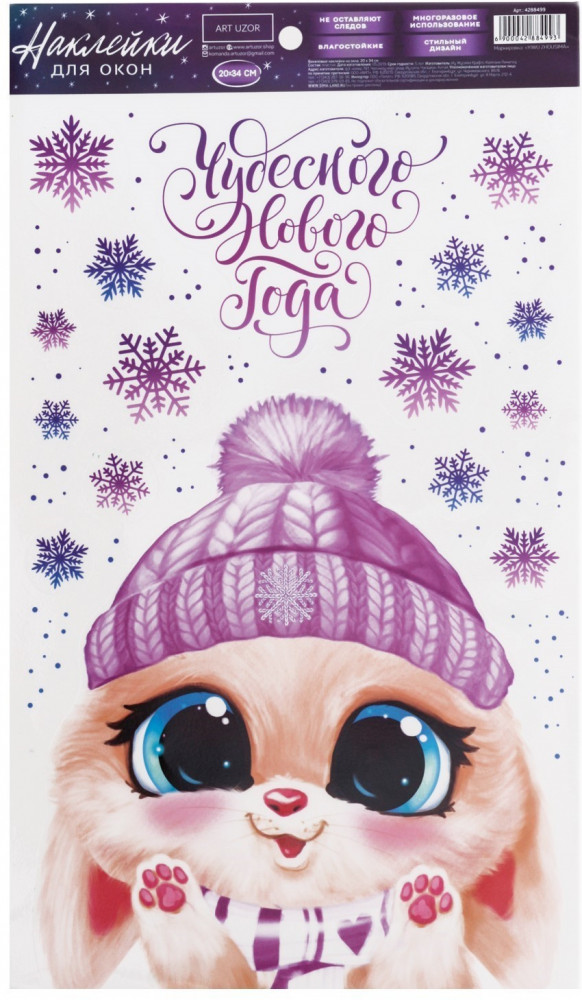 Арт Узор Набор наклеек на окно многоразовых «Зайчонок»+20