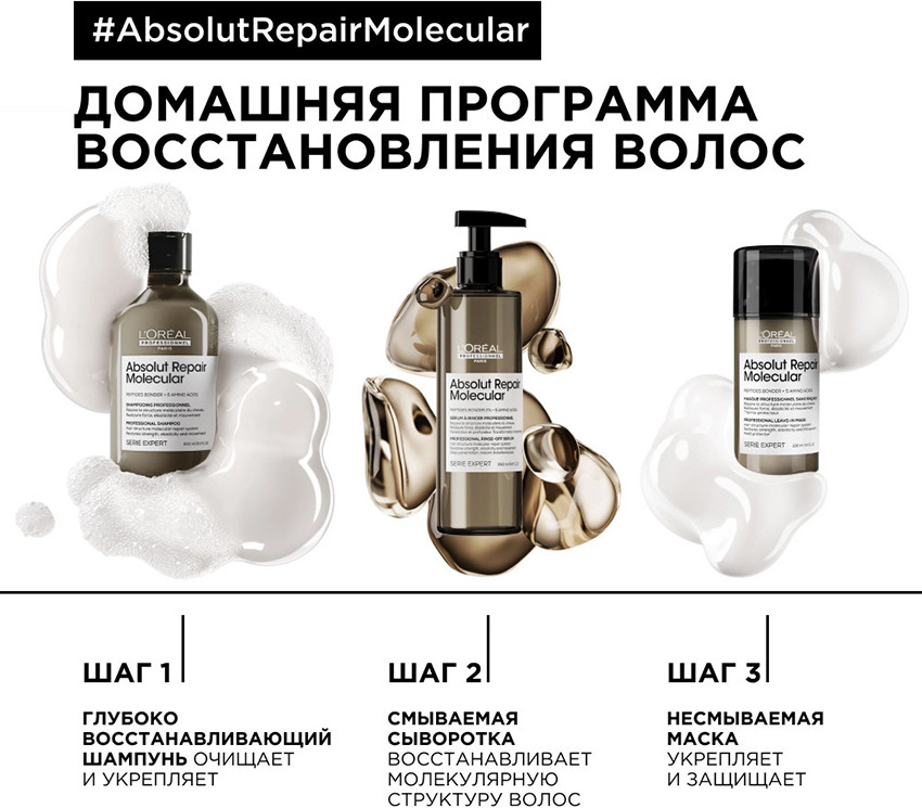 💳 Оплатить за товар можно при получении 🇰🇿 Есть бесплатная доставка по Казахстану от 1 дня 🎁 Копите бонусы с каждой покупки Серия: Absolut Repair Molecular Профессиональная смываемая сыворотка Absolut Repair Molecular, содержащая концентрат пептидного бондера + 5 аминокислот для восстановления молекулярной структуры волос. Чем больше волосы повреждены, тем сильнее разрушены пептидные структуры. Сыворотка мгновенно проникает в фибру волос и заново отстраивает молекулярные связи для глубокого восстановления силы волос. Невероятная текстура меняет структуру волос изнутри. Эластичность восстанавливается. Впечатляюще улучшает блеск, мягкость и подвижность волос. Используется вместо обычной маски. Напоминающая сыворотку текстура, без эффекта пленки. Запоминающийся аромат бергамота, ванили, сандалового дерева и мускуса. |