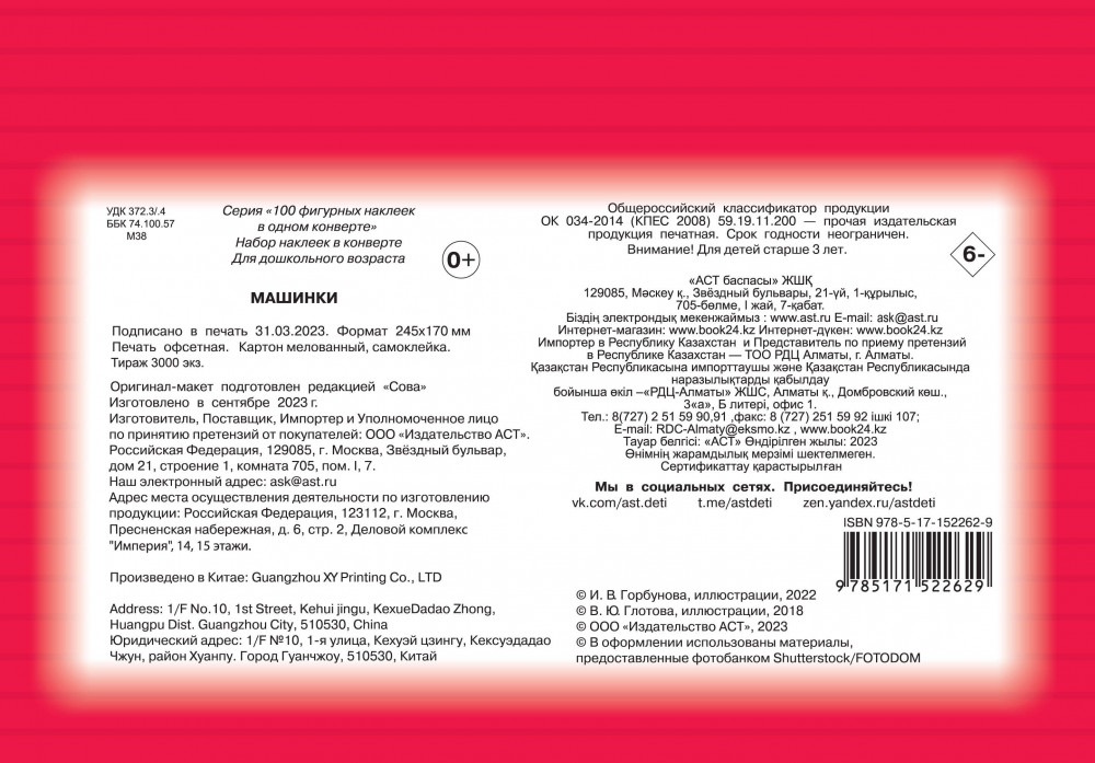 💳 Оплатить за товар можно при получении 🇰🇿 Есть бесплатная доставка по Казахстану от 1 дня 🎁 Копите бонусы с каждой покупки Серия: 100 фигурных наклеек в одном конверте «Машинки» — большой и яркий конверт, в котором собрано 100 фигурных наклеек. Стикеры универсальны и подойдут для украшения тетрадей, личных дневников и обложек тетрадей. Нет ни одной повторяющейся картинки. В конверте мальчик найдёт разные виды машин: легковые автомобили, грузовики, гоночные машины, машины специального назначения! |