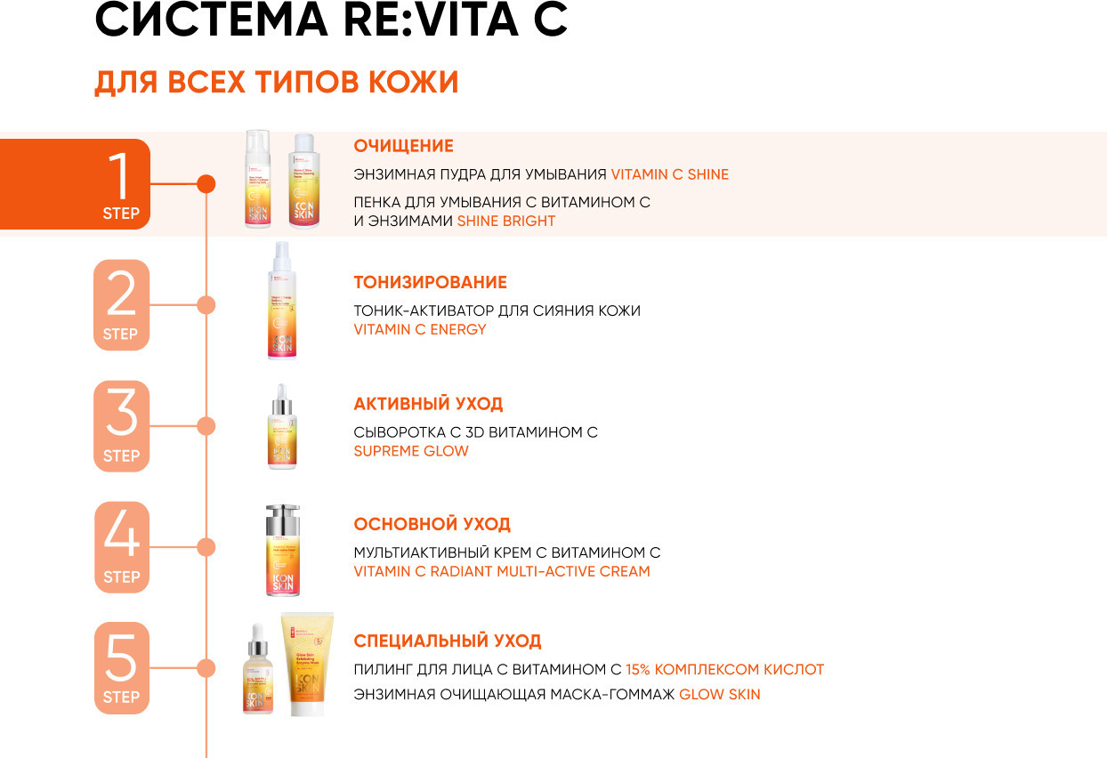 Icon Skin Пудра энзимная для умывания «Vitamin C Shine»+242 мягкое очищение не сушит гладкая кожа хорошая пенка экономичный расход приятная текстура