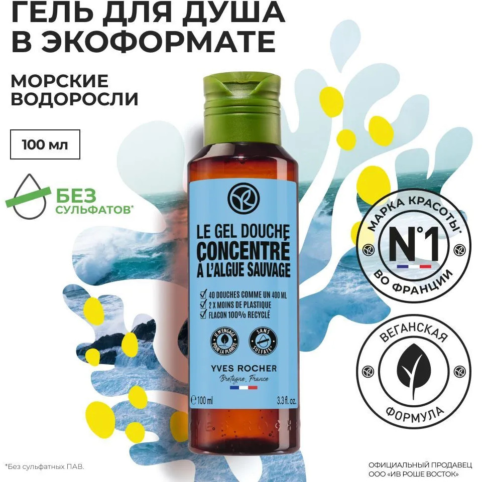 Yves Rocher Гель для душа в экоформате «Морские водоросли»