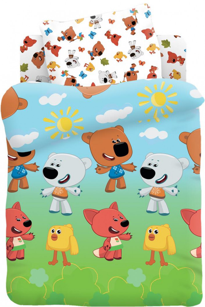 Главные герои мультфильма уютно устроились на лужайке и наслаждаются теплой летней погодой. Идеальный рисунок для спальни малыша. Простынку и наволочку украшает мелкораппортный рисунок с главными героями.