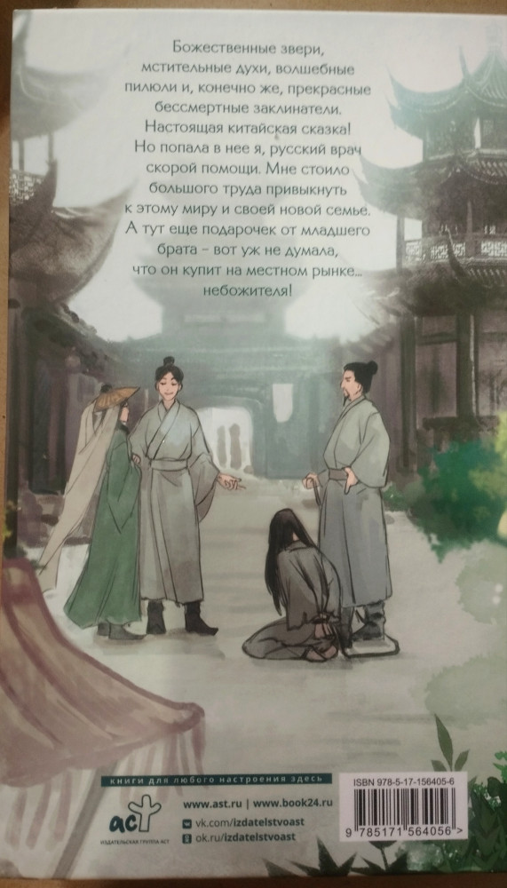 Книга замечательная - с юмором, иронией, сарказмом и конечно любовью. История про попаданку, обычную русскую медсестру, которая попала в мир древнего Китая, во времена небожителей))) Я любитель такого фэнтези формата - зашла на ура! Книга в отличном качестве - запаянная в плёнку, с подарочной открыткой (арт с обложки), оформлена в китайском стиле❤️. Очень жду второй том "Особенности воспитания небожителей"- надеюсь во Флипе она будет!!! Кому интересно - данная история будет издаваться в 4 томах.