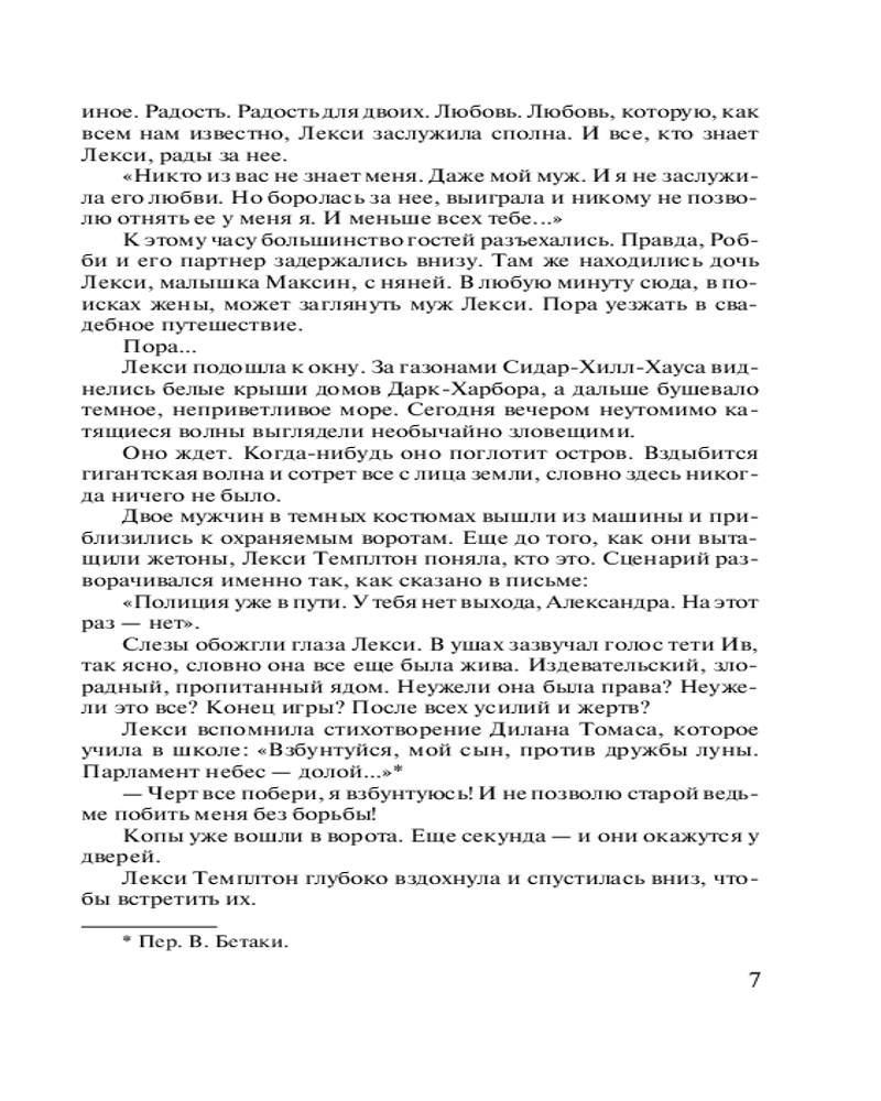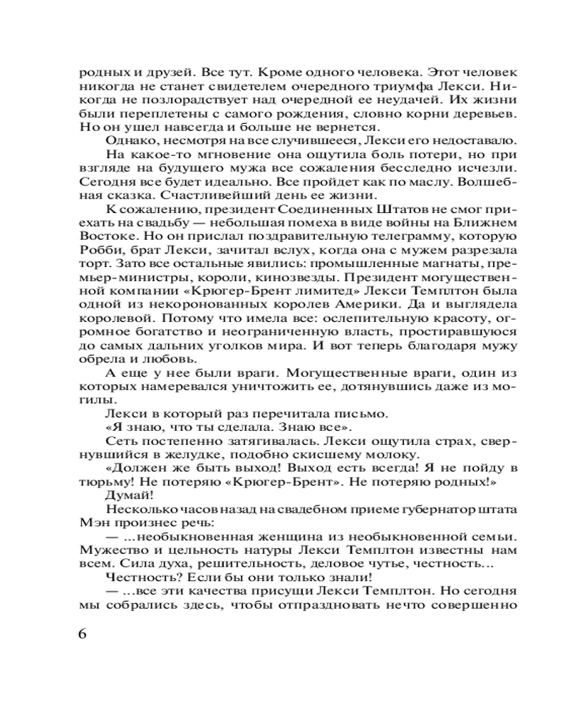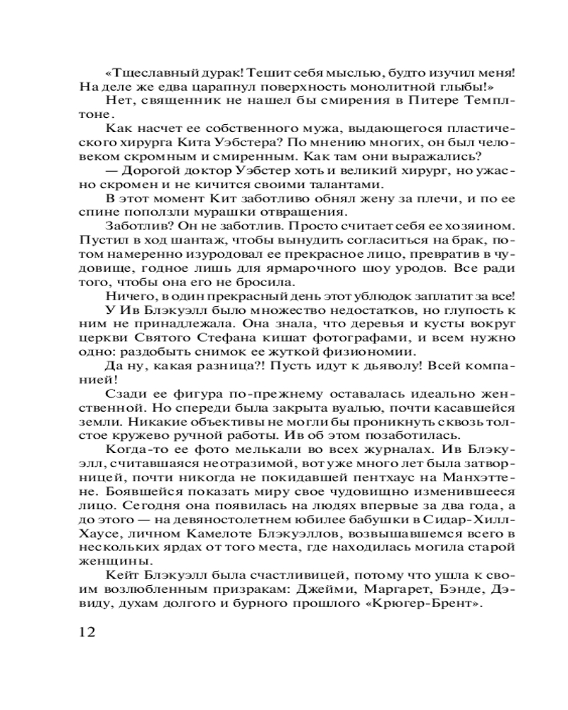 Интриганка-2В данный момент этот товар отсутствует в продаже. Возможно, у нас найдется аналогичный или похожий товар здесь. Серия: Бестселлеры Сидни Шелдона В семье Кейт Блэкуэлл выросла ее достойная наследница — Лекси Темплтон. Еще одна женщина, считающая, что «цель оправдывает средства», — и готовая заплатить любую цену за то, что желает получить. Но времена изменились. И нынешней «интриганке» жизнь готовит еще более опасные сюрпризы, чем Кейт. Лекси снова и снова балансирует на краю пропасти. |