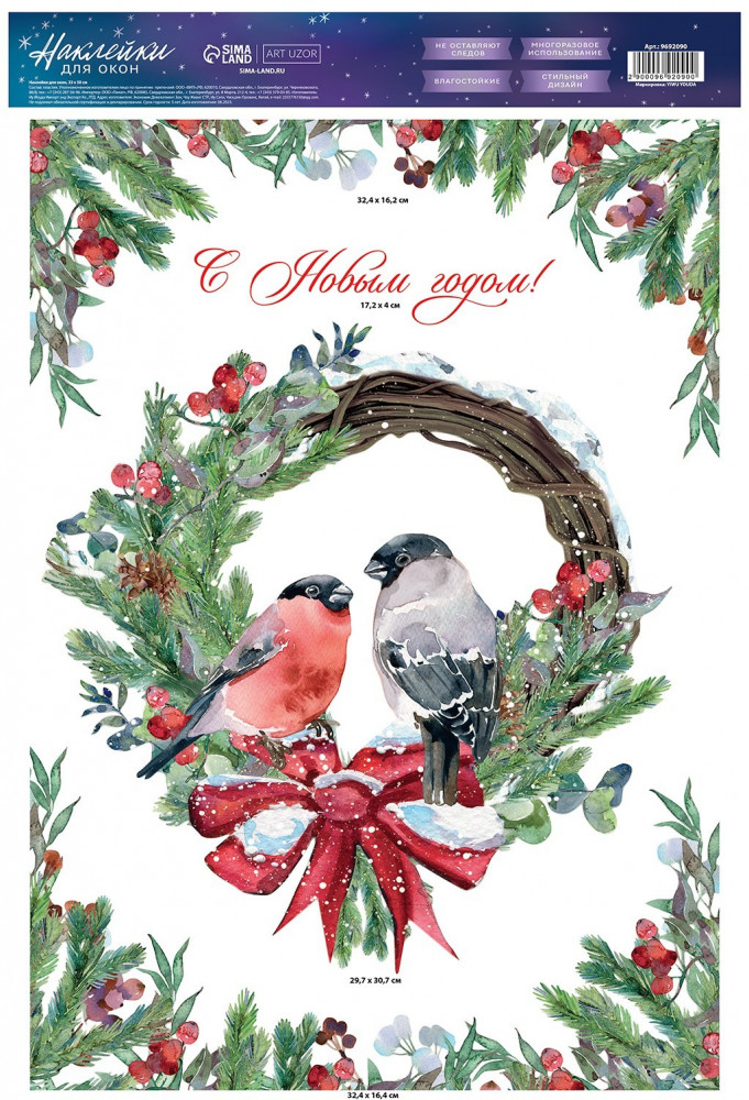 Арт Узор Наклейка для окон многоразовая «С Новым годом!»-30% +5