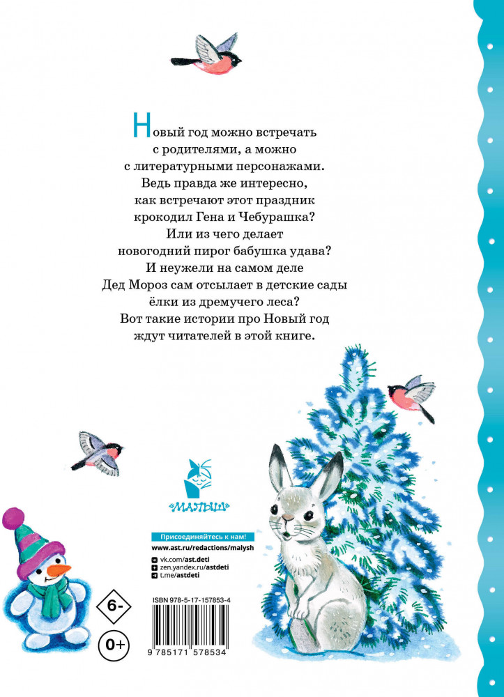 В данный момент этот товар отсутствует в продаже. Возможно, у нас найдется аналогичный или похожий товар здесь. Серия: Праздничный подарок В книгу вошли сказки про Новый год самых известных писателей-сказочников: Владимира Сутеева, Эдуарда Успенского, Григория Остера, Михаила Пляцковского. Какая бывает зима? С кем встречают Новый год Чебурашка и крокодил Гена? Как получить в подарок ёлку и из чего испечь праздничный пирог? Каждый ребёнок должен узнать ответы на эти вопросы.