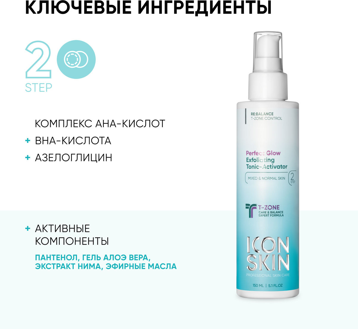 Icon Skin Тоник-активатор для лица с кислотами «Perfect Glow»В данный момент этот товар отсутствует в продаже. Возможно, у нас найдется аналогичный или похожий товар здесь. Серия: Re:Balance Глубоко очищающий тоник-пилинг для лица с комплексом AHA+BHA кислот оказывает мягкий пилинг-эффект и обновляет все слои кожи, улучшая и выравнивая ее рельеф и тон. Рекомендуется для комбинированной и нормальной кожи. Работает как на поверхности эпидермиса, удаляя ороговевшие клетки, так и внутри пор, растворяя сальные пробки и очищая их. |