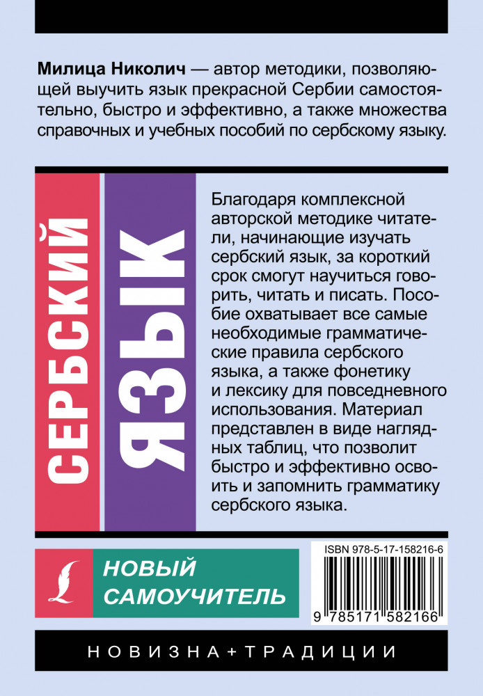 Серия: Эксклюзивный самоучитель Милица Николич — автор методики, позволяющей выучить язык прекрасной Сербии самостоятельно, быстро и эффективно, а также множества справочных и учебных пособий по сербскому языку. |