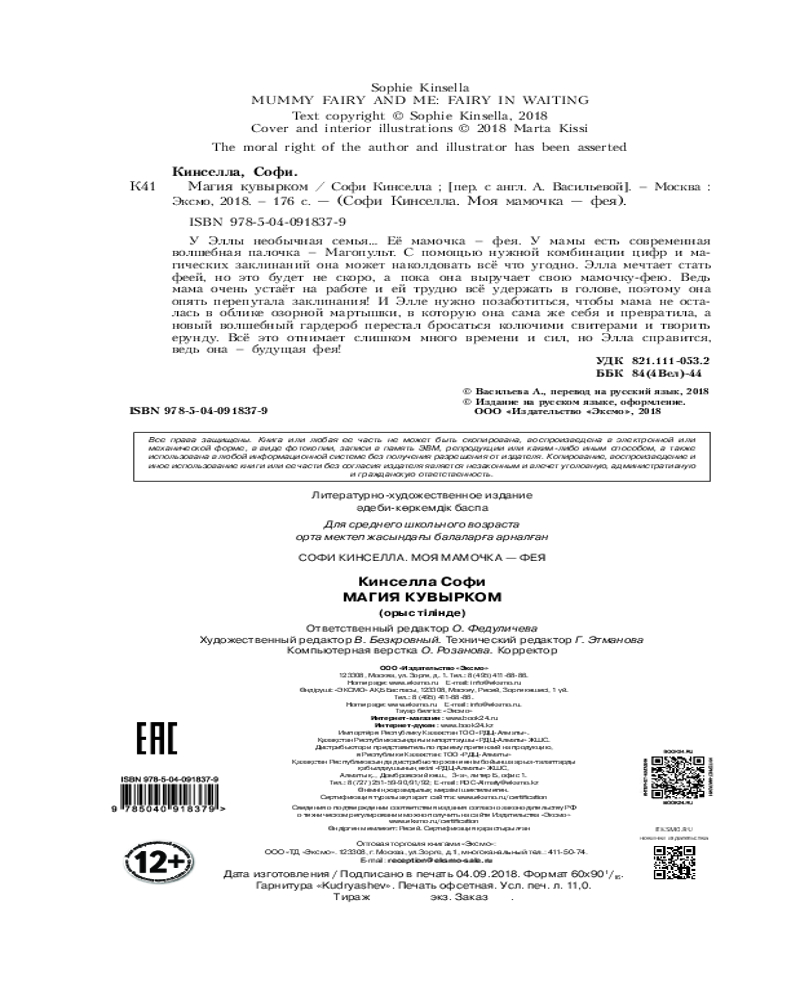 💳 Оплатить за товар можно при получении 🇰🇿 Есть бесплатная доставка по Казахстану 🎁 Копите бонусы с каждой покупки Серия: Детск. Моя мамочка – фея. Бестселлер Софи Кинселлы «Сегодня, пожалуйста, никакого волшебства!» — сердито сказал папа, когда мы всей семьёй отправились на деловой обед к папиному начальнику мистеру Ли и его жене. Для папы это очень важный день, поэтому мамочка-фея пообещала, что не будет колдовать. Только плохо вы знаете мою маму, если верите, что она сможет хотя бы один день обойтись без волшебства... |