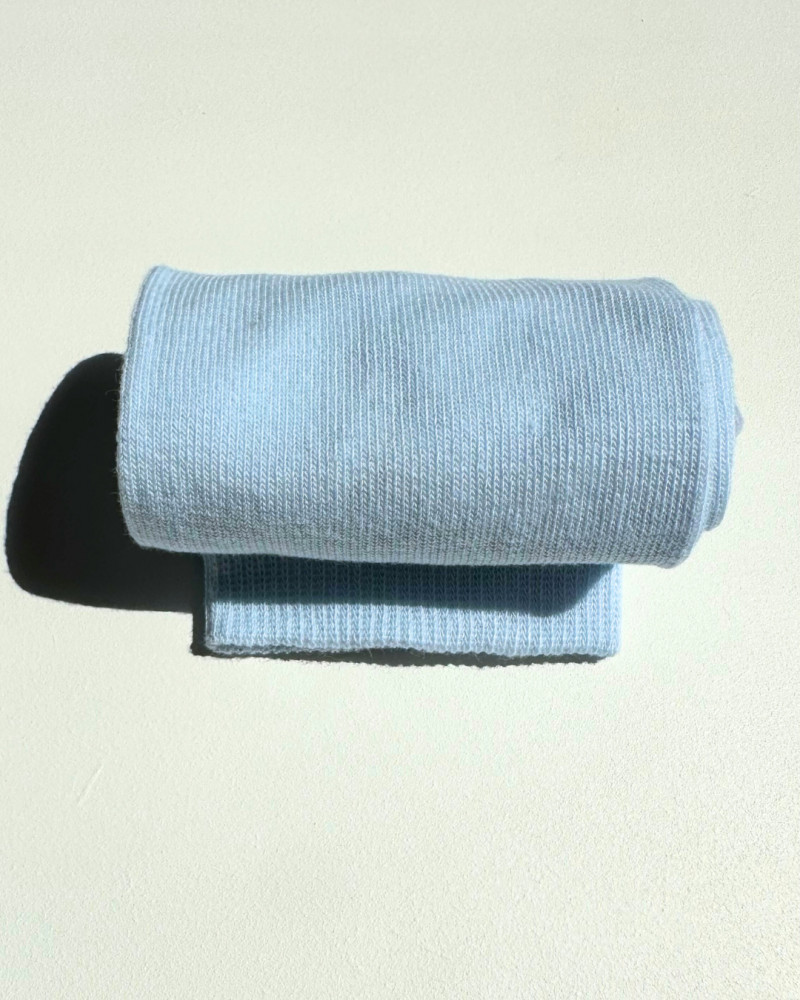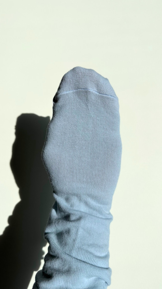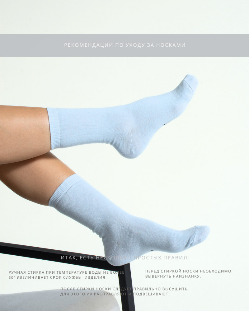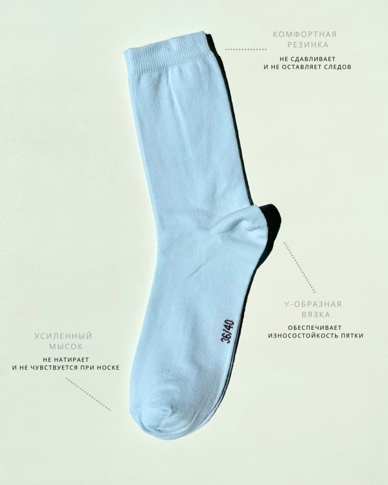 Цвет вообще не совпадает с фото, это не голубой, а почти белый. На хлопок 98% тоже не тянут - как обычные китайские носки, резинка очень тугая и впивается в ноги. На пятке сильно растягиваются, сами грубые на ощупь и собираются толстыми складками над подъемом стопы.