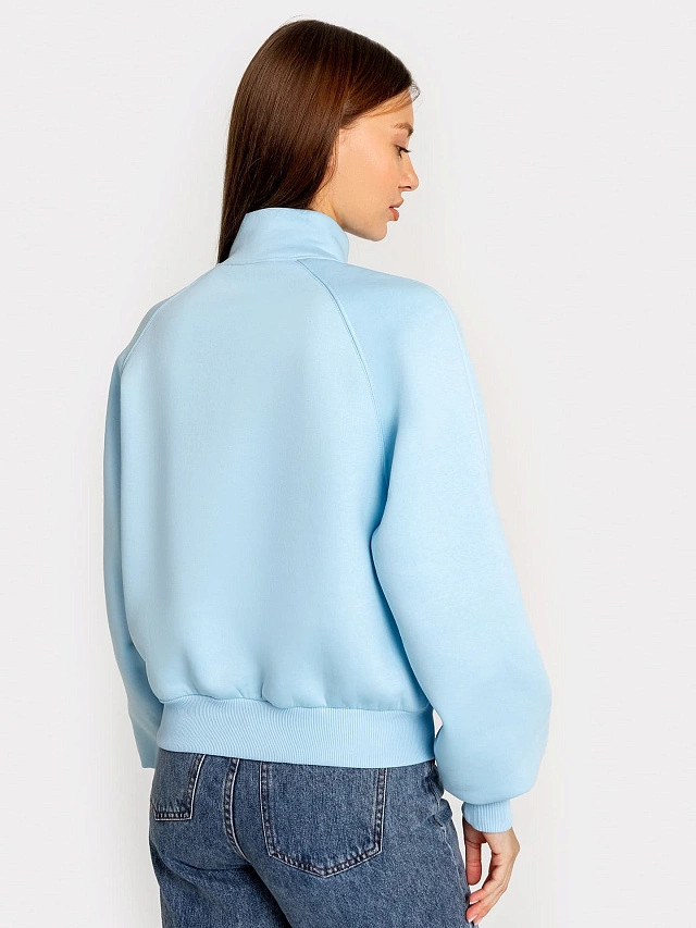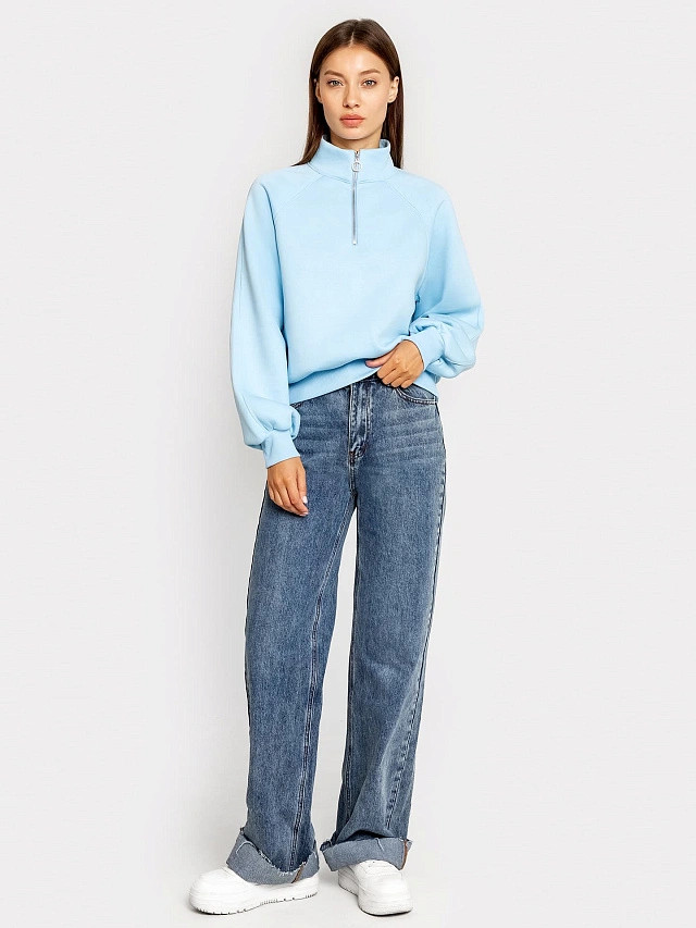 Прекрасный джемпер, красивый, нежно-голубой цвет, гладкая, плотная ткань, футер не лезет. Ношу вторую неделю, стирала несколько раз, всё отлично. На рост 170 см коротковат, но очень понравился и я его купила, о чем не жалею. Цена смешная для такой качественной вещи.